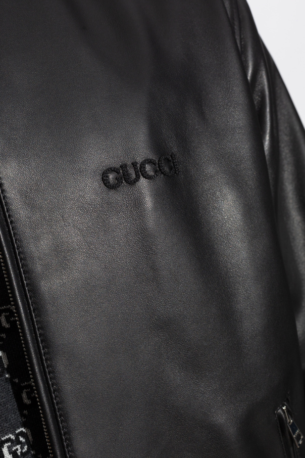 Introducing the Leather Bomber Jacket by Gucci, an epitome of timeless elegance and modern sophistication. This classic bomber jacket, crafted from premium, smooth black lamb leather, boasts a refined silhouette with gently rounded shoulders, ensuring a tailored fit. The jacket features a full-length front zipper, two side pockets with zip closures, and ribbed trims at the sleeves, hem, and collar. The subtle black Gucci logo, intricately embroidered on the left chest, seamlessly blends into the design, while the ribbed cuffs are adorned with distinctive green and red stripes, adding a touch of iconic luxury. The interior is lined with high-quality viscose, providing unparalleled comfort. The elasticated finishes at the collar, cuffs, and bottom hem enhance wearability, making it perfect for both casual and formal occasions. Why Buy This Product? Exquisite craftsmanship and luxurious materials. Iconic Gucci design with subtle logo detailing. Practical and stylish with secure zip pockets. Versatile for various occasions, from daily wear to formal events. Comfortable fit with elasticated trims for added ease.
