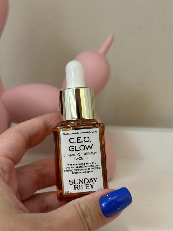 15 млМасло для лица Sunday Riley C.E.O Glow Vitamin C + Turmeric Face Oil мгновенно впитывается в кожу, насыщенное витамином С, куркумой и маслом вечерней примулы, осветляет, увлажняет и делает кожу сияющей.