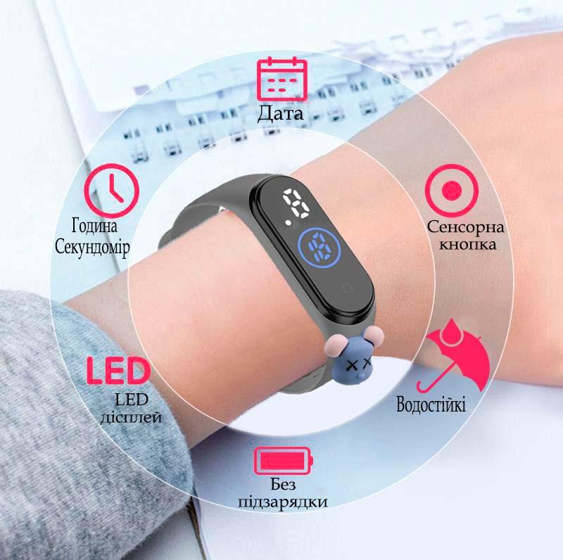 Материал ремешка:Силикон ,Пол:Для женщин , Для мужчин , Для мальчиков ,Механизм:Электронный ,Циферблат:Электронный ,Особенности:Водонепроницаемый корпус ,Функции:Подсветка ,Описание