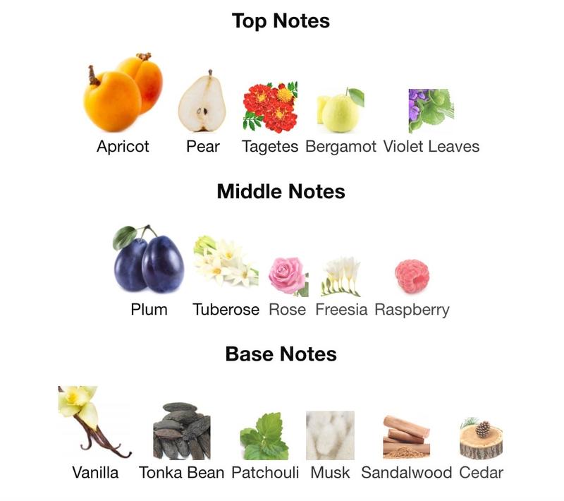 Начальная нота: Абрикос, Бергамот, Груша, Листья фиалки, Чернобривцы