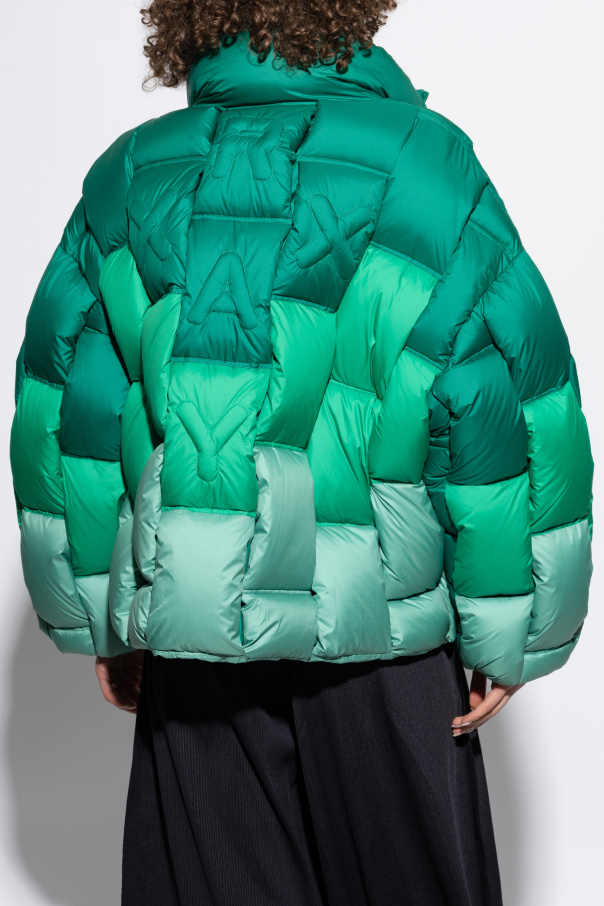Introducing the Rectangle jacket from the exclusive RAXXY collection – an exquisite fusion of casual elegance and modern design. This green puffer jacket, meticulously crafted for women, redefines outerwear with its striking oversized silhouette and prominent quilted panels. The Rectangle jacket boasts a unique rectangular pattern that creates a bold visual statement. Made from premium puffer material, it offers unparalleled warmth and volume. The gradient green hues, transitioning from darker shades at the top to lighter tones at the bottom, add a touch of sophistication to its aesthetic. Designed for both style and functionality, this jacket features a high collar for added protection against the cold and a convenient front zipper. The subtle yet distinctive raised letters "X," "R," and "A," integrated into the quilting on the back, highlight the brand's attention to detail. With practical side pockets, this jacket ensures you stay cozy while exuding effortless chic. Why Choose This Product? Luxurious puffer material for optimal warmth and comfort. Oversized, rectangular quilting for a contemporary look. High collar and dual-zipper design for enhanced protection. Gradient green tones offering a sophisticated visual appeal. Practical side pockets for everyday convenience. Exclusive RAXXY branding with unique quilted lettering.
