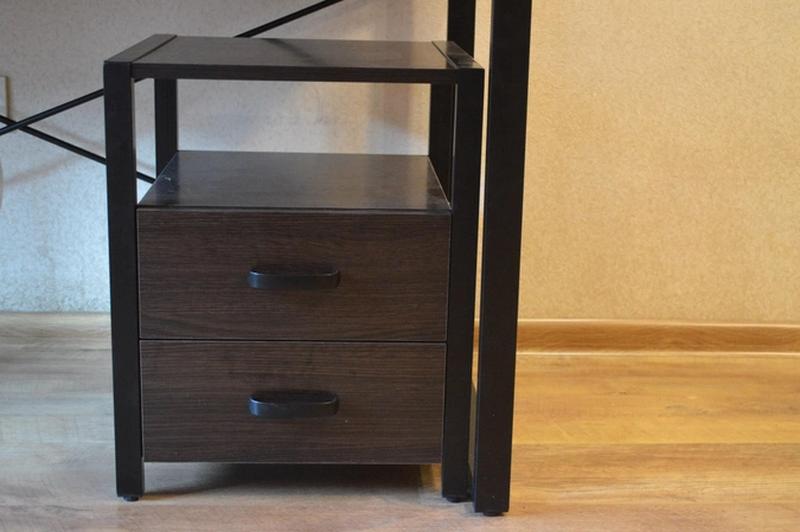 Сучасний дизайн дозволяє використання як вдома так і в офісі. Основа тумби виготовлена із високоякісної профільної труби та покрита порошковою фарбою. Порошкове покриття надійно захищає метал від впливу вологи, подряпин та легких ударів. Деталі корпусу виготовлені з якісної ЛДСП товщиною 16 мм з поклейкою протиударною кромкою 2 мм. Спеціальні опорні ножки захистять підлогу від виникнення подряпин. Надійна та стійка конструкція, легке збирання за допомогою мініфіксів, якісна та надійна фурнітура, телескопічні направляючі повного висування в шухлядах. Тумба поставляється в розібраному вигляді, потрібне збирання. Всі деталі насверлені та пронумеровані, в комплекті вся необхідна фурнітура, схема та інструмент для збирання.
