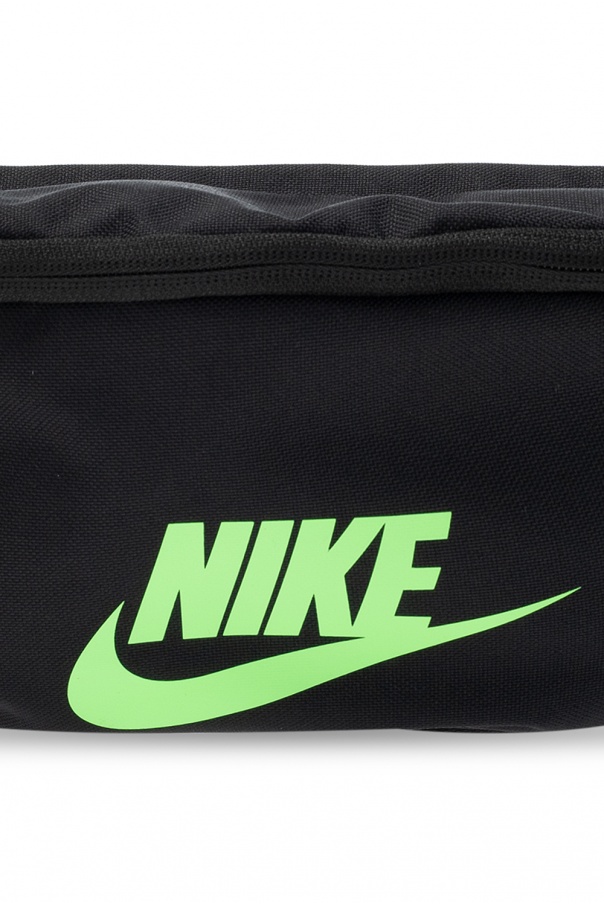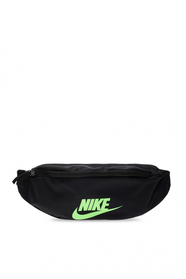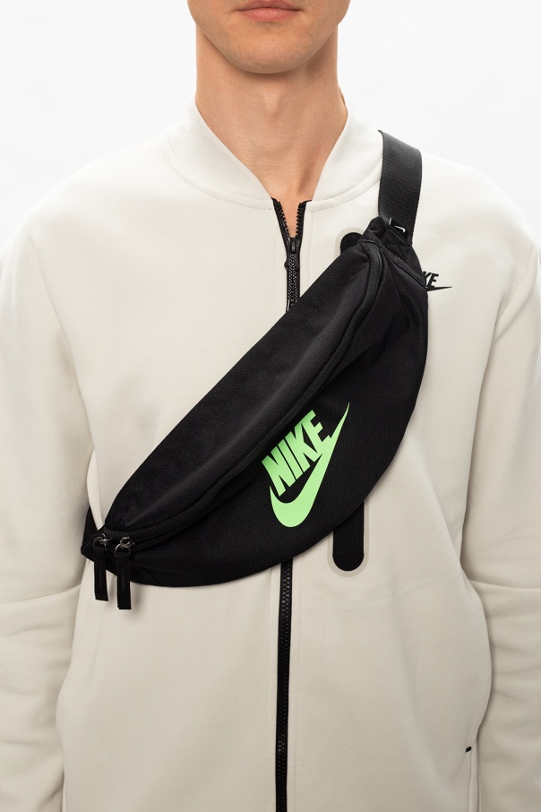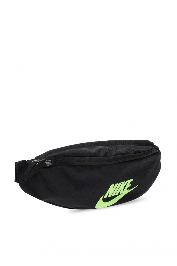 Black belt bag from Nike. Printed with the label's logo in green, this style comes with zip closing, an external zip pocket on the back, an adjustable strap with buckle and interior with one compartment and one zip pocket.