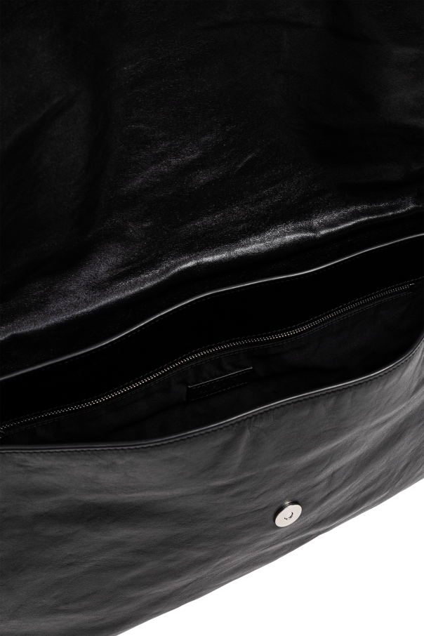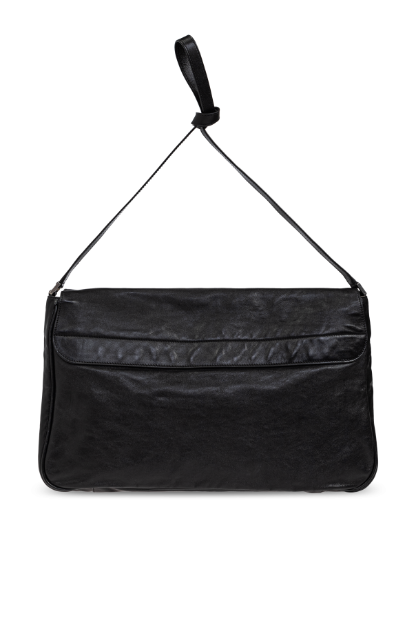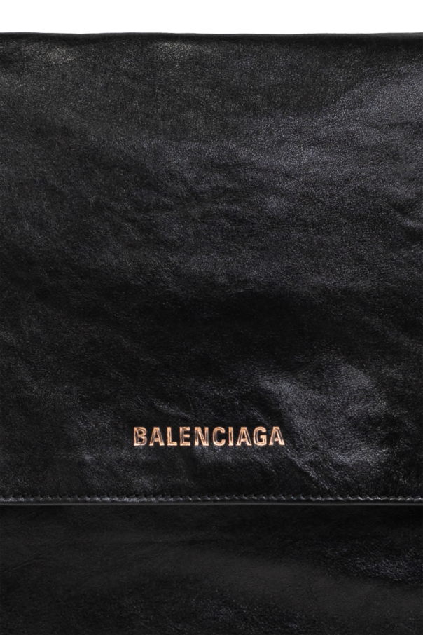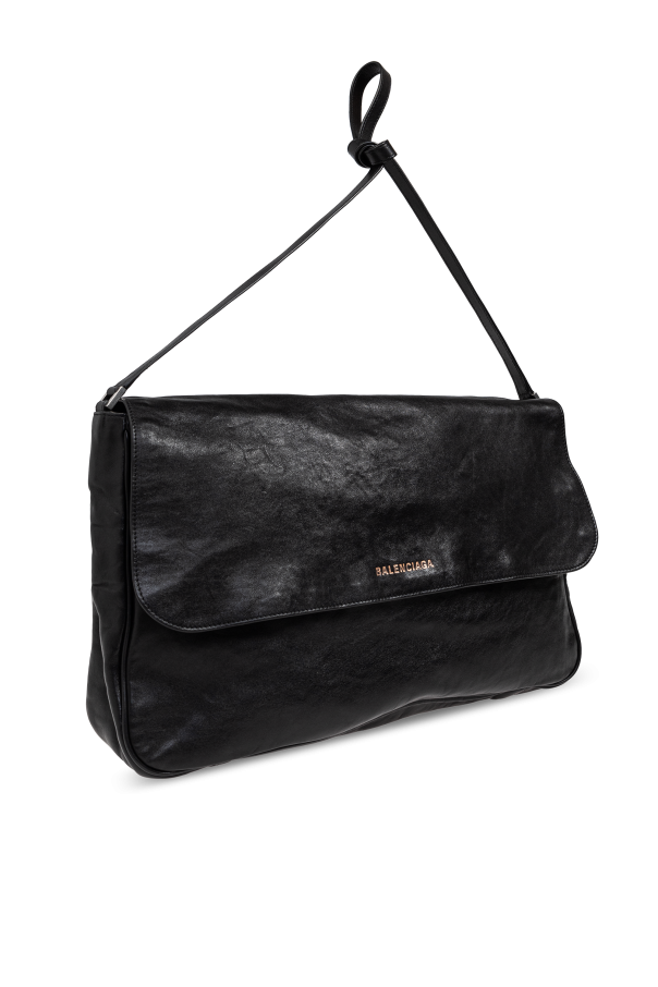 Introducing the ‘Grungy’ shoulder bag from Balenciaga's exclusive collection, a paragon of elegance and sophistication. This rectangular satchel boasts a sleek silhouette with a flap closure, exuding a timeless allure. Crafted from smooth black leather with a subtle sheen, this bag epitomizes luxury. The front flap is adorned with the iconic Balenciaga logo in silver, adding an elegant accent that underscores the product's high quality. Inside, the bag is meticulously organized with compartments, ensuring practicality and functionality. A zippered pocket offers secure storage for your essentials. Featuring an adjustable strap, this bag can be worn in multiple ways, catering to the individual needs of its user. Why Choose This Product? Classic design with a modern twist. High-quality leather for a luxurious feel. Functional interior with multiple compartments. Adjustable strap for versatile styling. Iconic Balenciaga branding.