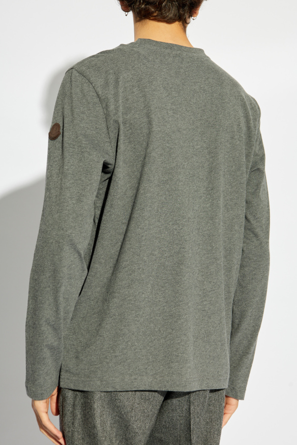 Introducing the epitome of refined casual wear, the Moncler Grey Long-Sleeve T-shirt. This exquisite garment, crafted from premium cotton, embodies the seamless blend of comfort and sophistication that Moncler is renowned for. The T-shirt boasts a classic silhouette with long sleeves and a round neckline, presenting a timeless appeal that is both versatile and effortlessly stylish. Its subtle grey hue offers a neutral palette, making it a perfect addition to any discerning wardrobe. Adorning the chest is a discreet "MONCLER" logo, harmoniously matching the shirt's color, exuding an understated elegance. Additionally, the left sleeve features a contrasting textured Moncler emblem, adding a touch of distinctive sophistication. Designed with straight hems and cuffs, this T-shirt maintains a sleek and polished look, ideal for both casual and more formal ensembles. Why Choose This Product? Luxurious 100% cotton material for ultimate comfort Timeless design with a classic fit Subtle branding for an elegant, minimalist aesthetic Versatile grey color suitable for various styles Iconic Moncler quality and craftsmanship