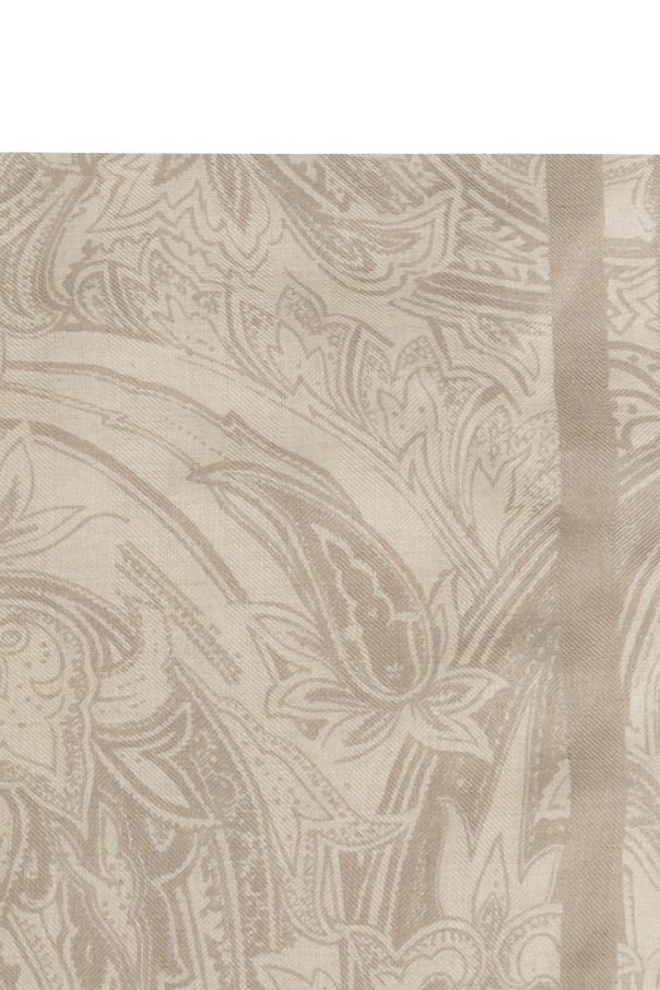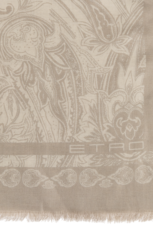 Introducing the epitome of sophistication and luxury, the Decorative Pattern Scarf from Etro's exclusive collection. This rectangular, classic scarf boasts an expansive surface, allowing for versatile styling options. The scarf is adorned with an exquisite paisley pattern, intricately woven into the fabric, imbuing it with an elegant and refined appearance. The delicate structure of the pattern enhances its luxurious appeal. Crafted from a blend of high-quality modal and cashmere, this scarf offers unparalleled softness and a gentle touch against the skin. The frayed edges on one end add a distinctive charm, while the "ETRO" inscription and additional border details further highlight its exclusivity. Available in a timeless gray-beige hue, this scarf effortlessly complements a myriad of ensembles, making it a versatile addition to any wardrobe. Whether for everyday wear or special occasions, it elevates any outfit with a touch of elegance. Why Choose This Product? Luxurious Material: Made from a premium blend of modal and cashmere for ultimate comfort and softness. Elegant Design: Features a sophisticated paisley pattern and frayed edges for a unique look. Versatile Color: The gray-beige shade ensures it pairs perfectly with various styles and occasions. Exclusive Branding: The "ETRO" inscription confirms its prestigious origin.