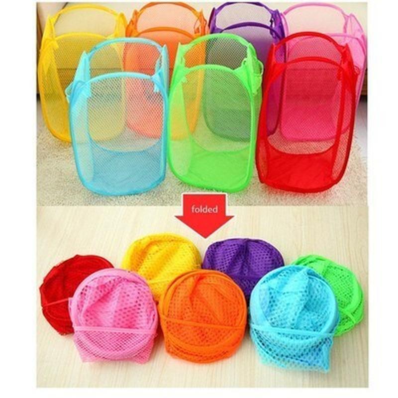 Універсальний кошик виготовлений з еластичної сітки, має малу вагу, легко скласти/розвертатися. Ідеально підходить як кошик для сортування іграшок, брудної білизни, взуття, одягу.