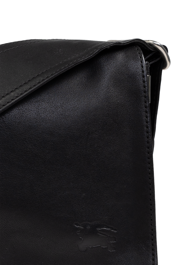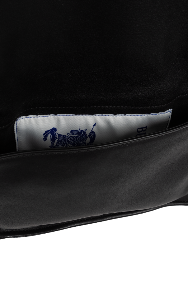 Introducing the Trench Shoulder Bag, a paragon of sophistication from Burberry's exclusive collection. This exquisite black bag, crafted from the finest lambskin leather, epitomizes luxury and elegance. The rectangular shape with its rounded edges offers a classic silhouette, while the embossed logo on the front adds a touch of prestige. Its wide, adjustable shoulder strap ensures unparalleled comfort, making it a versatile companion for the modern gentleman. Inside, the bag boasts a plush pocket with an artistic lining, accentuating its luxurious design. Secured with a discreet zipper beneath the flap, it features two separate compartments with magnetic snap closures and a slip divider, providing both functionality and style. Why choose this product? Exquisite lambskin leather construction for a smooth, elegant appearance. Iconic Burberry embossed logo for a touch of luxury. Spacious interior with organized compartments for practicality. Adjustable shoulder strap for personalized comfort.
