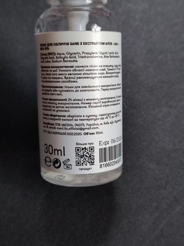 -пилинг ДЛЯ ОБЛИЧКА SANE С ЭКСТРАКТОМ АЛОЕ + AHA BNA 10%ціна за 2 продукти