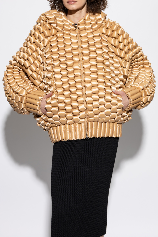 Presenting the exquisite Kirin Jacket from the exclusive RAXXY collection. This beige masterpiece showcases a classic silhouette with a hood, offering elegance and practicality in one refined package. Crafted from premium materials, the outer layer features a luxurious, satin-like polyester with a unique three-dimensional quilted texture, resembling small, raised cushions. The interior is lined with soft polyester, ensuring comfort, while the insulation consists of 90% down and 10% feathers, providing exceptional warmth. The jacket's design is a mosaic of small, raised squares, creating a distinctive and elegant pattern. The wide ribbed cuffs and hem ensure a snug fit, enhancing both comfort and style. A two-way zipper runs down the center, facilitating easy wear, and the spacious hood, adorned with the characteristic pattern, adds an extra touch of sophistication. The back of the hood features a designer logo patch, a hallmark of luxury brands. With its dominant beige hue, this jacket exudes a timeless elegance, making it a perfect addition to any discerning wardrobe. Ideal for women seeking casual yet luxurious outerwear, the Kirin Jacket stands out in the categories of WOMEN, CLOTHING, JACKETS, and CASUAL. Why You Should Buy This Product Exclusive design with a unique quilted pattern High-quality materials ensuring warmth and comfort Elegant beige color suitable for various occasions Wide ribbed cuffs and hem for a perfect fit Two handy pockets for practicality Designer logo patch adding a touch of luxury