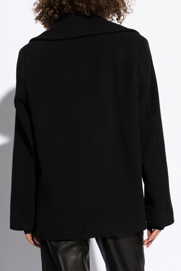 Introducing the Helia Short Coat, a paragon of classic elegance and minimalist design, brought to life by the distinguished designer Iro. Crafted with a discerning eye for detail, this coat is rendered in a sumptuous blend of wool and polyamide for the exterior, with an interior lining of viscose and cotton, ensuring both warmth and comfort. The Helia boasts a timeless black hue, enhanced by its sleek, straight lines and classic lapels, embodying the essence of refined sophistication. The double-breasted button closure and flap pockets on the front add a touch of traditional charm, while maintaining the coat's streamlined silhouette. Its long sleeves and length that graciously falls just below the waist make it versatile for various styling options. Attention to detail is evident in the meticulously matched button color, crafted from materials that echo the coat's luxurious composition, ensuring a cohesive and polished finish. The back of the coat is deliberately unadorned, emphasizing its elegant minimalism and the designer's commitment to purity of form. Why Purchase This Product? Designed by the acclaimed Iro, guaranteeing an exclusive and high-quality garment Made from premium wool and polyamide, with a lining of viscose and cotton for unparalleled comfort Features a classic black hue and double-breasted button closure for timeless elegance Minimalist design with carefully chosen details like matched buttons, embodying sophisticated simplicity Perfect for layering over various outfits, enhancing versatility and style