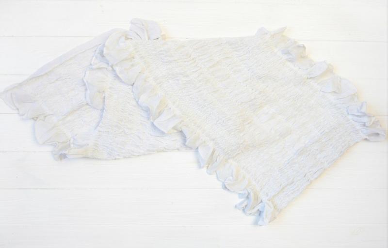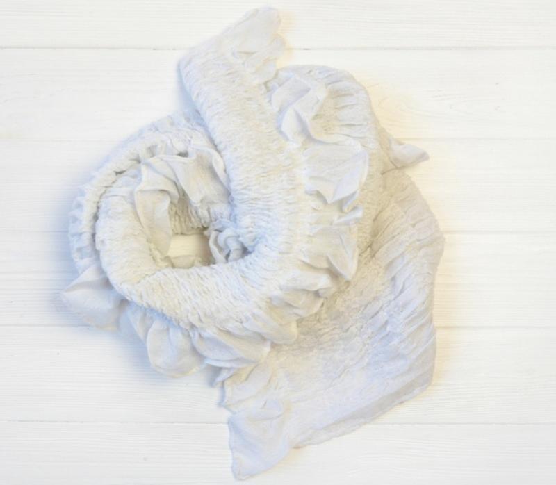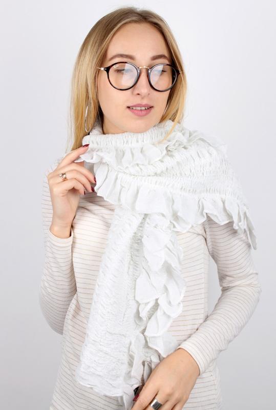 Женский шарф с рюшами. Волнистые края, базовые цвета - черный и белый. Мягкий и приятный на ощупь материал, оптимальная длина. Праздничный look нельзя оставить без этого аксессуара!Состояние: НовоеЦвет:- Серебристый