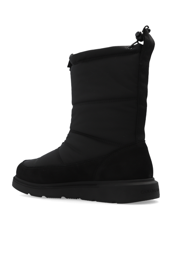 Black ‘Crofton’ snow boots from Canada Goose. Fastened with a zip, this pair features drawstrings at the back, a logo patch and black rubber sole.