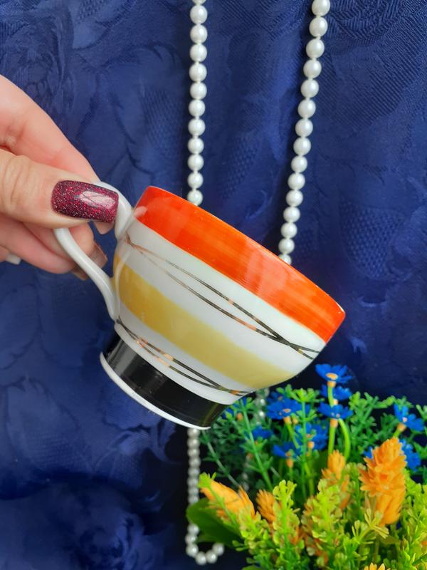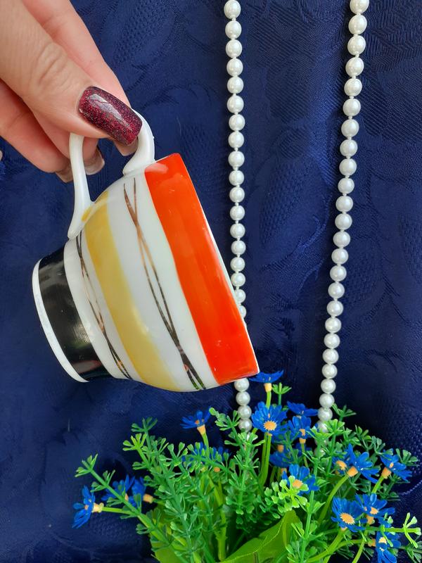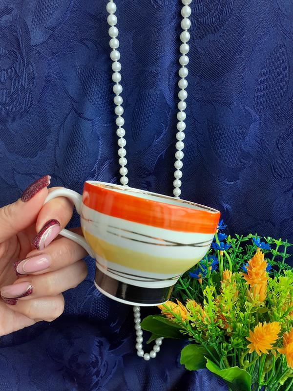 Это Барановский фарфоровый завод, середина 1960-х годов, - время, когда посуда начинает отличаться разнообразием цветов, приятными яркими оттенками, каждое изделие с любовью вручную расписывали по глазури, добавляя акценты позолоты!