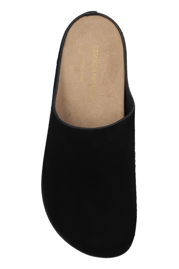 Experience the epitome of sophistication with our Leather Clogs from the exclusive collection by Common Projects. These clogs feature a timeless design with a closed front and open heel, ensuring both elegance and comfort. The flat sole enhances wearability, making them a perfect choice for the discerning individual. Crafted from premium leather, these clogs exude durability and a refined appearance. The dominant black color emphasizes their versatility and classic charm, while the smooth, unadorned surface highlights their minimalist aesthetic. Inside, a golden inscription of the designer’s name and place of production adds a touch of luxury. Designed for ultimate comfort, the clogs boast an anatomically shaped insole, providing unparalleled ease of wear. The sole, made from high-quality material, ensures excellent grip and cushioning, making every step a pleasure. Why Choose These Leather Clogs? Timeless clog design with a closed front and open heel Premium leather construction for durability and elegance Versatile black color for a classic look Minimalist design with a luxurious golden inscription Anatomically shaped insole for superior comfort High-quality sole for excellent grip and cushioning