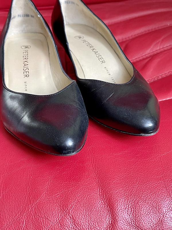 У відмінному стані, чорна шкіра. Дорогий німецький бренд Peter Kaiser, каблук 5,5 см по устілці до 24 см. На нешироку стопу. Розмір вказано 4,5 таблиці PK це європейський 37,5