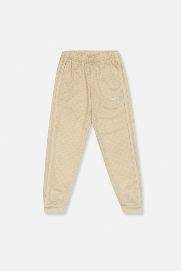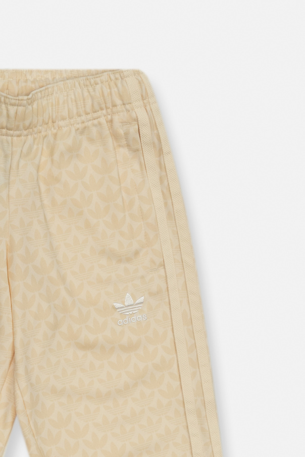Light beige sweatsuit from ADIDAS Kids. Embellished with the brand's logo, this set includes a zip-up top with a zip fastening long sleeves and elasticated edges and pants featuring a drawstring waistband.
