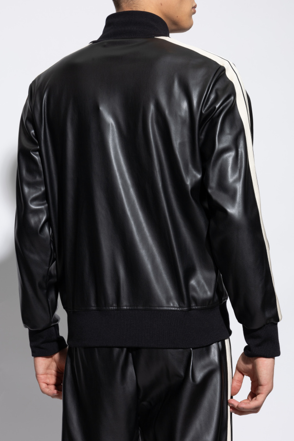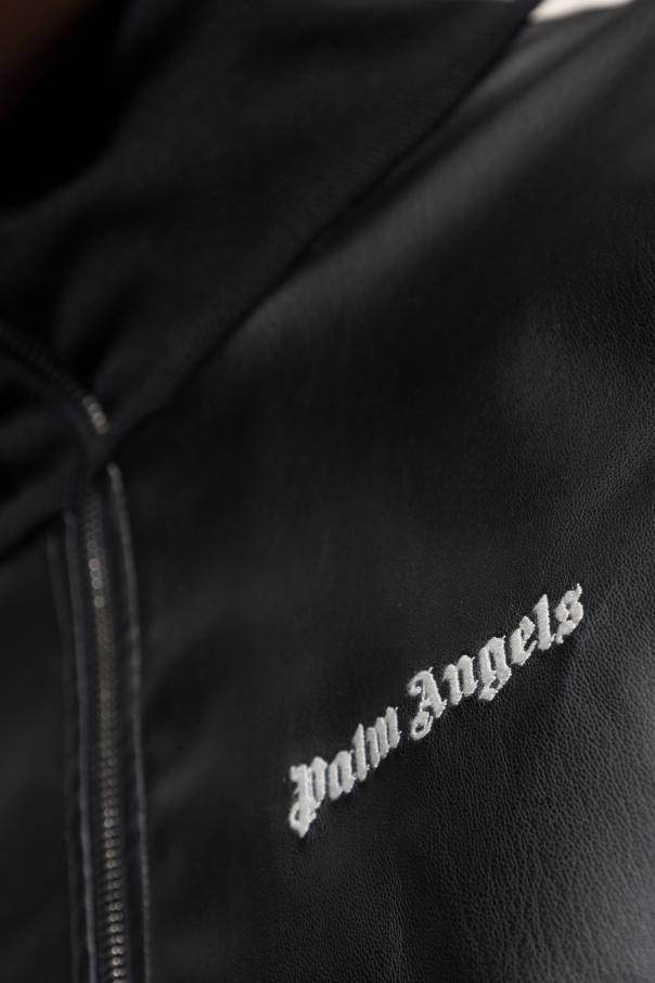 Introducing the Palm Angels Logo Jacket, an epitome of refined style and urban sophistication. This exclusive jacket from the esteemed Palm Angels collection is designed to make a statement, boasting a classic, straightforward cut with long sleeves and a front zip closure. The jacket features ribbed trims at the collar, cuffs, and hem, ensuring a snug fit and elevated comfort. Crafted from high-quality black material that mimics the luxurious allure of leather, this jacket is both striking and durable. The left chest is adorned with the distinctive embroidered “Palm Angels” logo in white, a hallmark of the brand’s attention to detail and craftsmanship. Adding a touch of contrast, the sleeves are accentuated with light-colored stripes running from the shoulders to the wrists. This jacket is perfect for any discerning gentleman seeking a versatile piece that seamlessly transitions from streetwear to more formal attire. With its elegant design and premium materials, it is a true testament to the brand's commitment to quality and style. Why Choose This Product? Classic cut with clean lines for a timeless look Premium material that offers a luxurious appearance Distinctive embroidered "Palm Angels" logo on the chest Contrasting stripes on the sleeves for added flair Ribbed trims at collar, cuffs, and hem for a perfect fit Two zippered pockets for secure storage