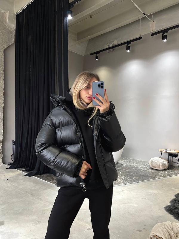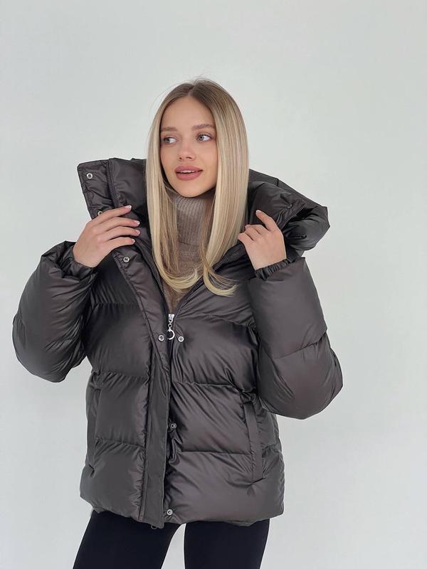 💎Пуховик стандартної довжини, базовий фасон зі з’ємним капюшоном із преміальної тканини