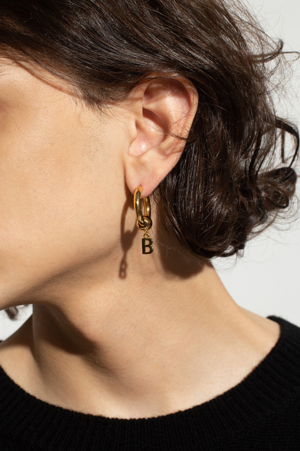 Gold-tone earring with a logo charm from Balenciaga. Made of 925 silver.