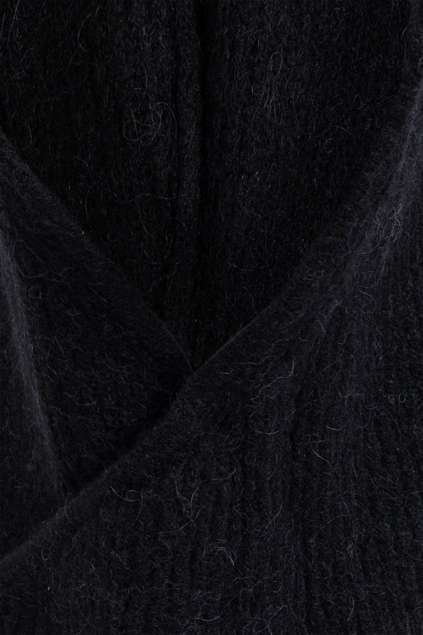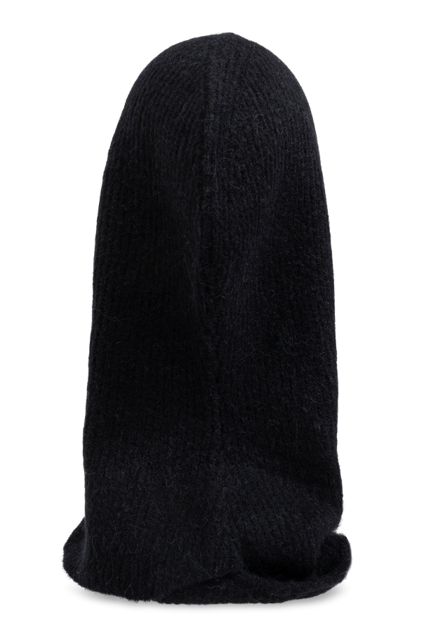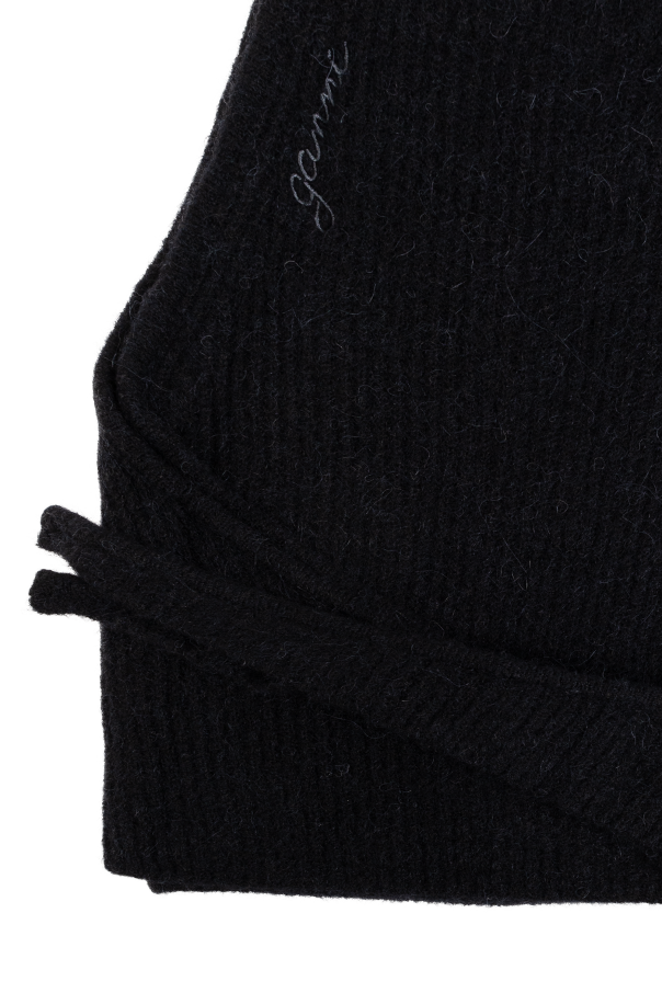 The Wool Hood with Ties by Ganni epitomizes refined elegance and contemporary style. Crafted from a luxurious blend of wool, alpaca, poliamid, and elastane, this black hood envelops you in unparalleled warmth and softness. Its classic, voluminous shape gracefully drapes around the head and neck, offering both comfort and protection against the cold. The solid black color enhances its sophisticated and minimalist allure, ensuring versatile pairing with any wardrobe. Distinguished by subtle detailing, this hood features an embroidered "Ganni" label, a testament to its designer origins. The adjustable ties at the bottom edge allow for a customized fit, while the delicate stitching adds a touch of understated elegance and functionality. This exclusive accessory, designed by the renowned Danish brand Ganni, can be worn alone or as an additional layer over other garments, making it a versatile addition to your collection. Why Choose This Product? Luxurious Material: A sophisticated blend of wool, alpaca, poliamid, and elastane. Designer Label: Embroidered "Ganni" mark signifying high-quality craftsmanship. Adjustable Fit: Ties at the bottom edge for a personalized fit. Versatility: Can be worn alone or layered for added warmth. Elegant and Minimalist: Solid black color and subtle stitching for a refined look.