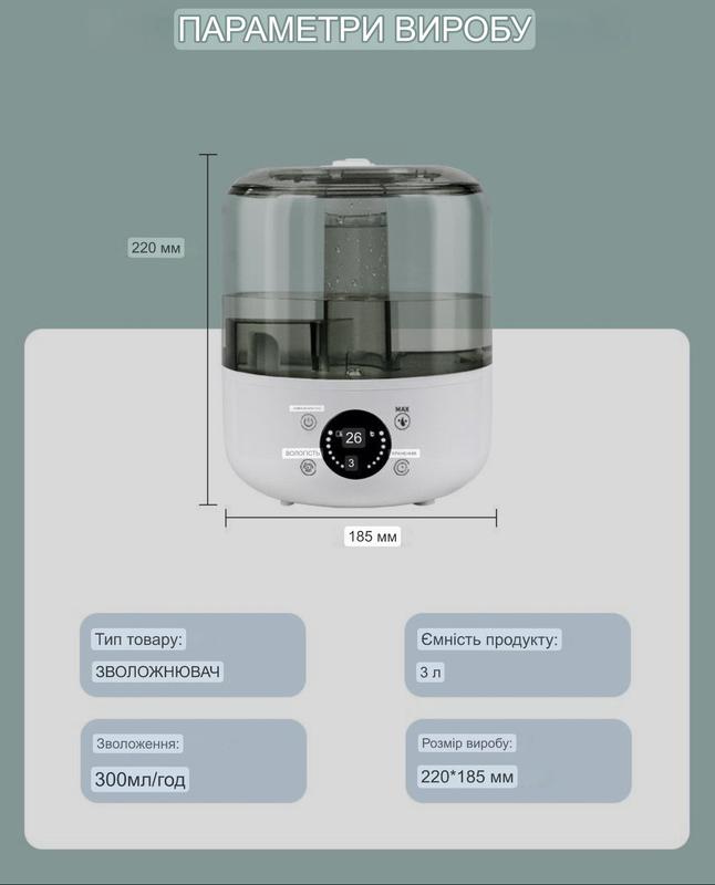 Благодаря объему резервуара 3л, производительности в 100-300 мл/ч и широкой площади покрытия до 35 кв. м это устройство эффективно увлажняет воздух в помещении в течение длительного времени без долива воды.