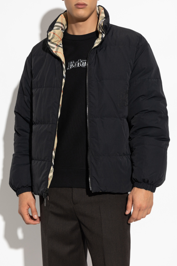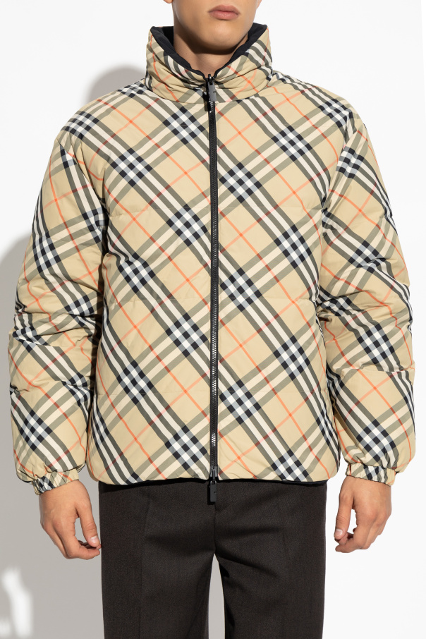 Introducing the Reversible Jacket from the exclusive Burberry collection, a paragon of sartorial elegance and functional design. This distinguished jacket epitomizes timeless style with its classic, straight silhouette featuring long sleeves and a high stand collar. The dual-sided design offers versatility and sophistication. One side showcases a signature plaid pattern in beige, black, white, and red, while the reverse side presents a sleek, solid black finish. Crafted from premium synthetic material, this jacket is lightweight and weather-resistant, ensuring it stands up to the elements with grace. Meticulous attention to detail is evident in its impeccable stitching and high-quality construction. The jacket fastens securely with a zipper and features elastic cuffs for a comfortable fit. Its understated elegance is further enhanced by the absence of visible logos, allowing the iconic plaid pattern to hint at its prestigious origin. Why Choose This Product? Reversible Design: Offers two distinct styles in one garment. High-Quality Material: Made from 100% Polyamide for durability and comfort. Timeless Aesthetic: Classic plaid pattern and minimalist black side. Functional Features: Elastic cuffs and high stand collar for added comfort and protection. Exclusivity: Designed by Burberry, a renowned name in luxury fashion.