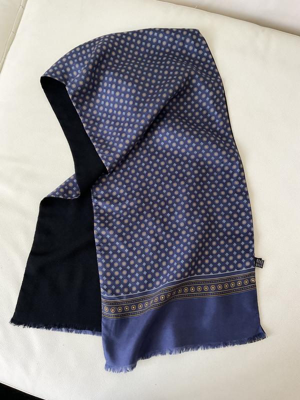 Мужской шарф-кашне в чорно-синих цветах и мелкий геометрический рисунок.