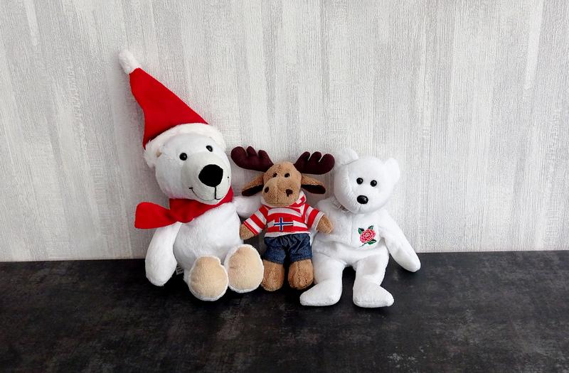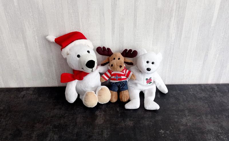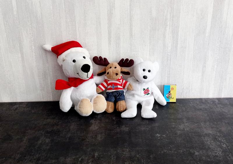 Продам 3 м'які іграшки гарної якості, у чудовому стані, як нові! Покупилися на лад дорожче. Ціна — за все. Ведмідь із новорічною шапкою — 26 см (довжина без шапки), ведмеді — 23 см, олень — 18 см.