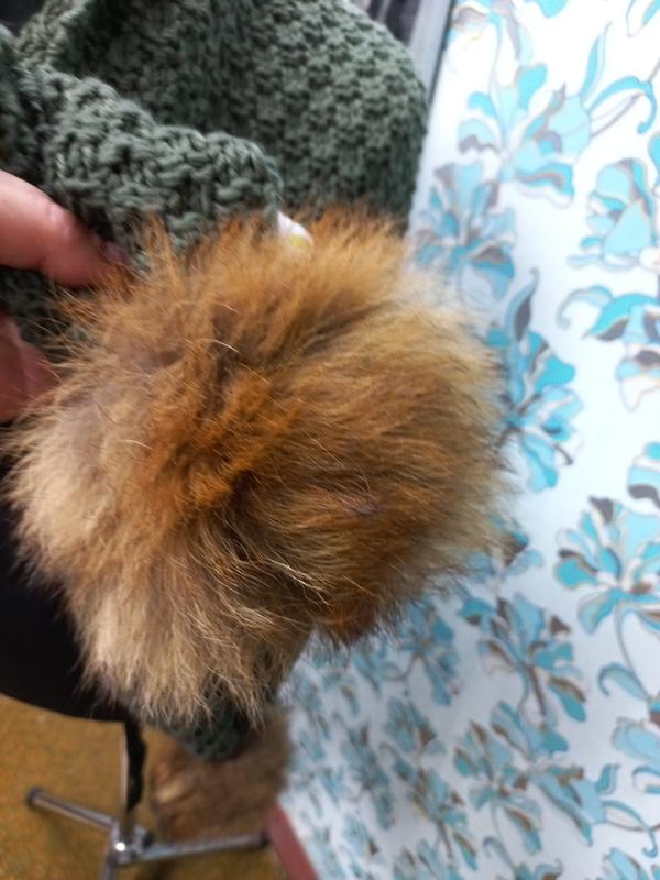 Шарф крупной вязки с пумпонами из натурального меха лисы, размер 24*230см.