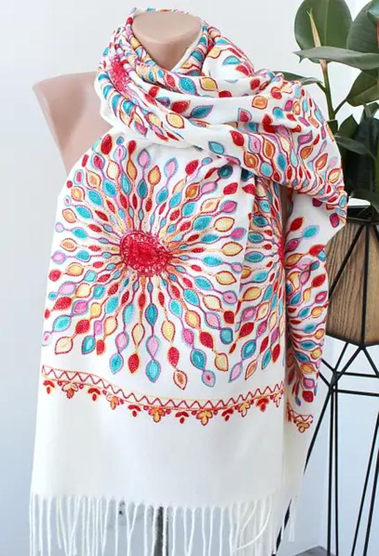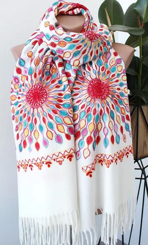 _________________________________________________Кашемировый шарф с оригинальной вышивкой придется по вкусу всем, кто ищет небанальное нарядное изделие, в котором сочетаются практичность и красота. Такая шаль не только согревает в непогоду, но и прекрасно украсит ваш образ.
