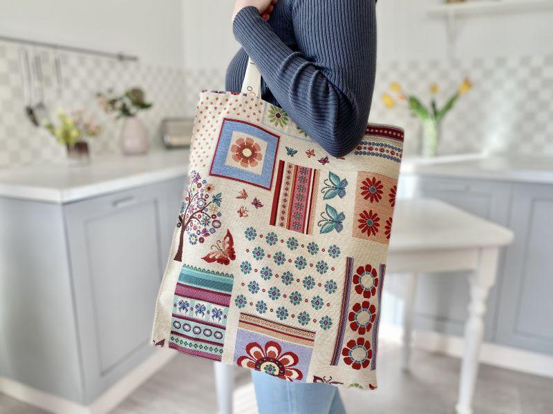 вместительная сумка из качественного плотного Испанского жаккарда.Сумка практичная в эксплуатации и в сложенном виде занимает мало места.