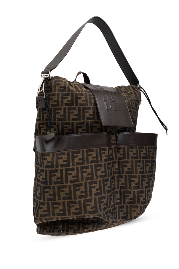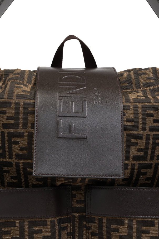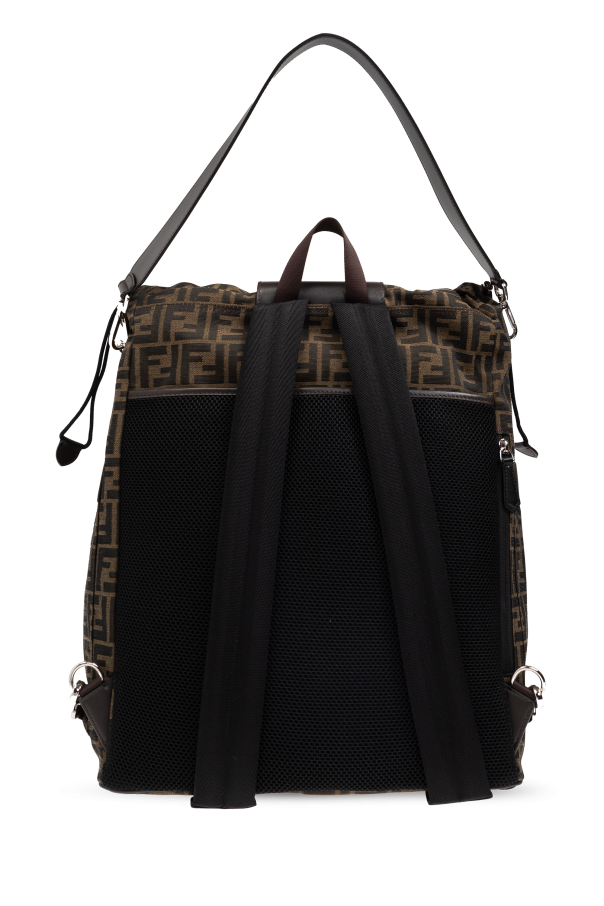 Introducing the exquisite Monogram Backpack by the illustrious fashion house, Fendi. This sophisticated accessory epitomizes timeless elegance and modern functionality. The backpack boasts a classic rectangular shape, adorned with Fendi's signature 'F' monogram pattern, meticulously crafted on high-quality fabric or canvas. The dark brown leather accents, including the straps and top handle, exude an air of refined luxury, further accentuated by the embossed Fendi logo on the front flap. Designed with practicality in mind, this backpack features three external pockets, perfect for effortless organization. The adjustable shoulder straps and top handle offer versatile carrying options, while the interior reveals a spacious main compartment and an additional zippered pocket, ensuring ample storage for all essentials. The predominant brown hue, complemented by darker accents, makes this backpack a versatile addition to any wardrobe, suitable for both everyday use and special occasions. Why Choose This Product? Timeless Design: Classic shape and iconic Fendi monogram pattern. Premium Materials: Crafted from high-quality fabric with leather accents. Functional Elegance: Features three external pockets and a spacious interior with a zippered pocket. Versatile Carrying Options: Adjustable shoulder straps and a top handle. Renowned Brand: Designed by the esteemed Italian fashion house, Fendi.
