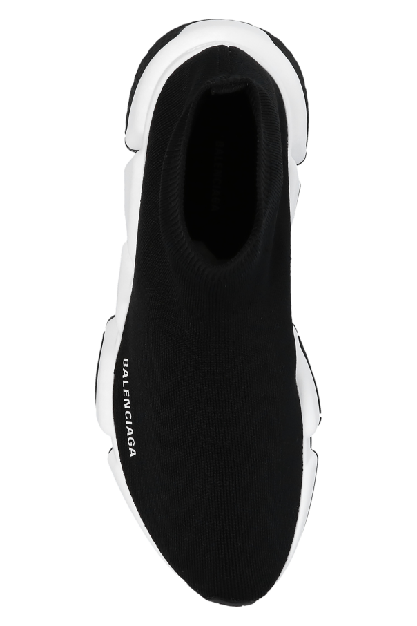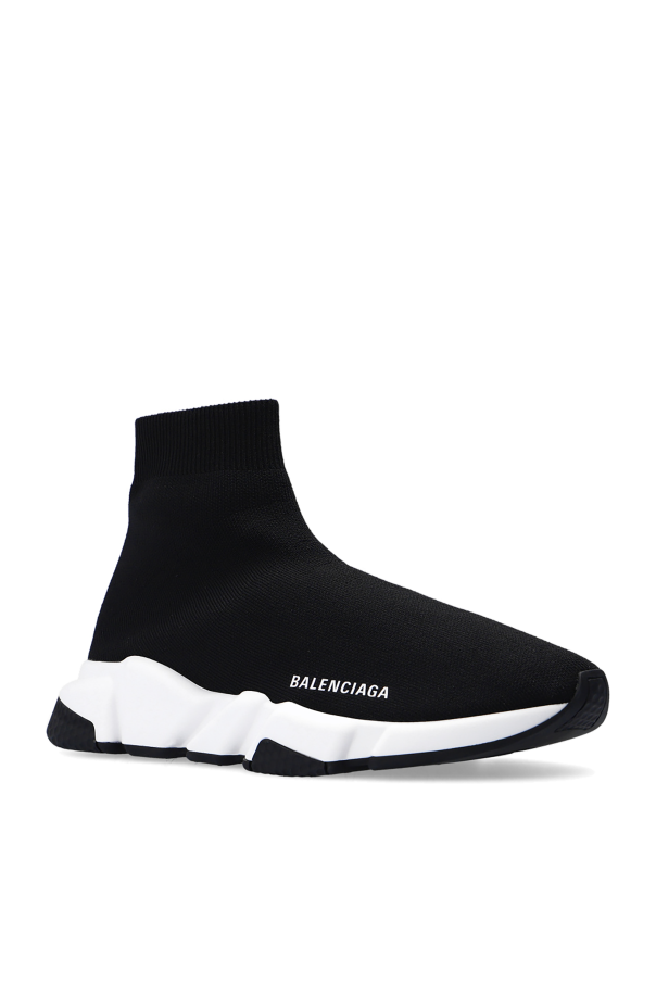 Black ‘Speed LT’ sneakers from Balenciaga. Made of technical knit with a sock-like edge, this pair boasts a high-top silhouette, a white and black rubber sole and the brand's logo printed in white.
