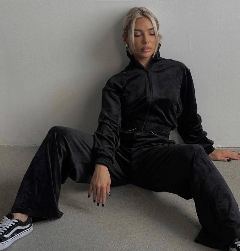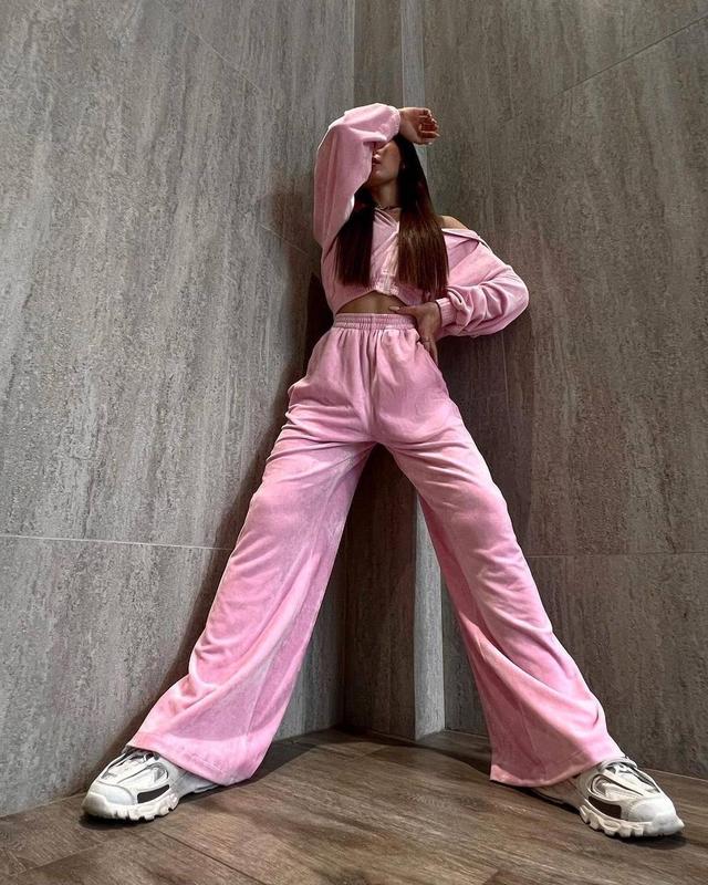 Колір: чорний , рожевийСпортивний костюм з штанами кльош із плюшевого велюру на хутрі , зігріє тебе осінніми прохолодними днями і вечорами