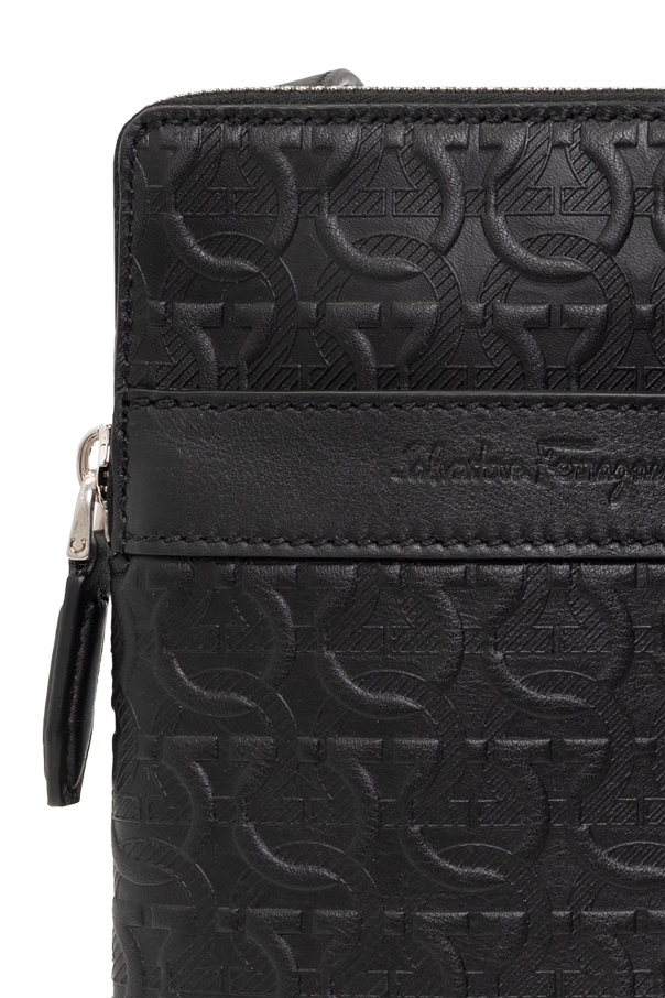 Black shoulder bag from FERRAGAMO. Crafted from calf leather embossed with an all-over 3D Gancini pattern, this design features a zip fastening, an external slip pocket on the front and back, an adjustable strap, silver-tone metal hardware and one internal compartment with a card slot.