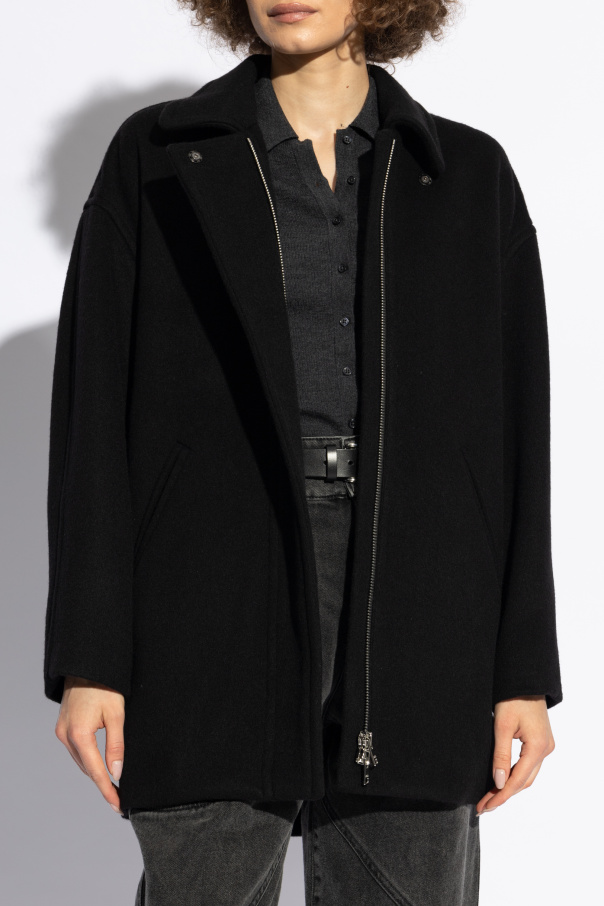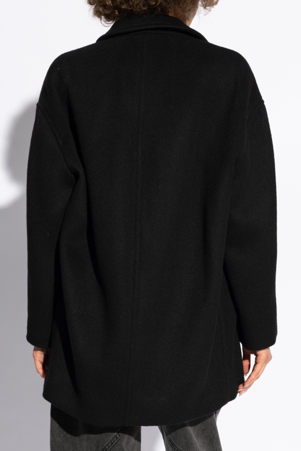 Introducing the Eveline Coat from the exclusive collection by Isabel Marant, a quintessential blend of timeless elegance and modern sophistication. This coat epitomizes luxury with its classic yet contemporary design, making it an indispensable addition to any discerning wardrobe. Crafted from a superior blend of wool, cashmere, and silk, the Eveline Coat offers unparalleled warmth and an exquisitely soft texture. The high-quality material ensures both comfort and a sumptuous feel, underlining its premium nature. Featuring a straight cut with a slightly oversized fit, this coat provides effortless elegance and ease of movement. The classic black hue enhances its versatility, seamlessly transitioning from formal occasions to everyday wear. Details such as the classic collar, hidden front zipper, and two diagonally placed pockets integrate functionality with impeccable style. The meticulous stitching and finishing touches reflect the brand’s commitment to excellence. Why Choose This Product? Supreme blend of wool, cashmere, and silk for ultimate comfort and luxury. Timeless black color, perfect for any occasion. Classic collar and hidden zipper for a refined look. Practical diagonal pockets seamlessly integrated into the design. Meticulous craftsmanship ensuring superior quality.
