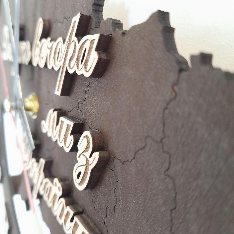 коричневого цвета. Сквозной циферблат с римскими цифрами и картой Украины по