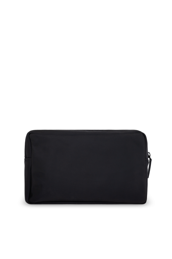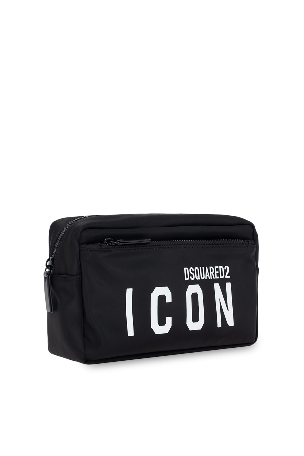 Black wash bag from Dsquared2. Printed with the brand's logo in white, this design features a zip fastening, a zipped pocket on the front and one internal compartment with a slip pocket.