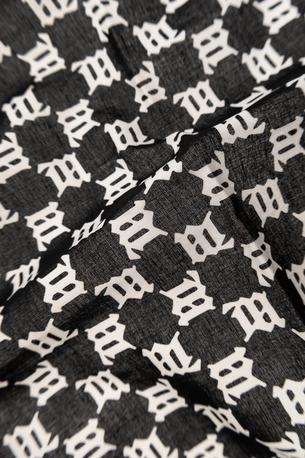 Black and white scarf from MISBHV. Made from a cotton and silk blend, this item is decorated with a monogram and logo patch.