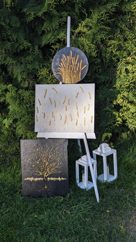 Картина "Колоски" золото на черном.
