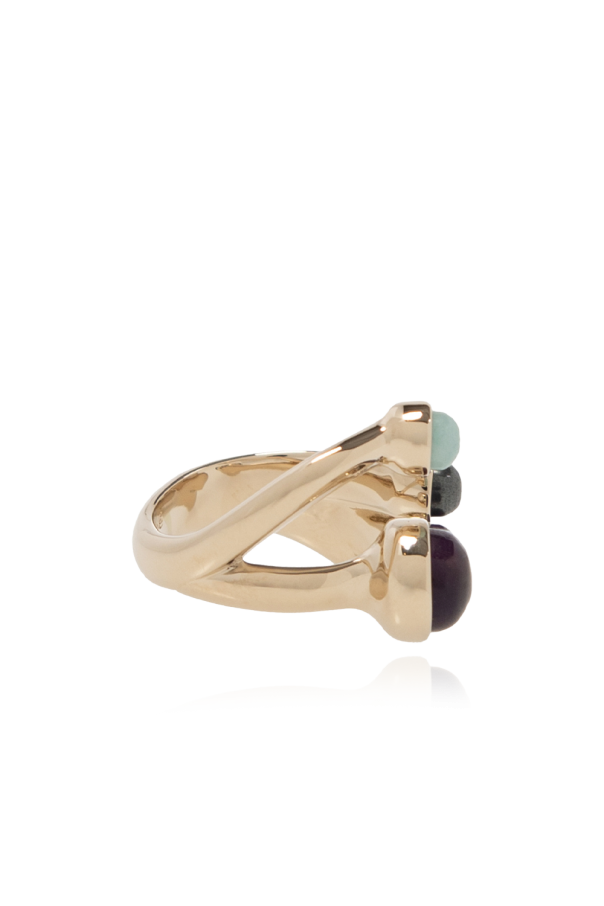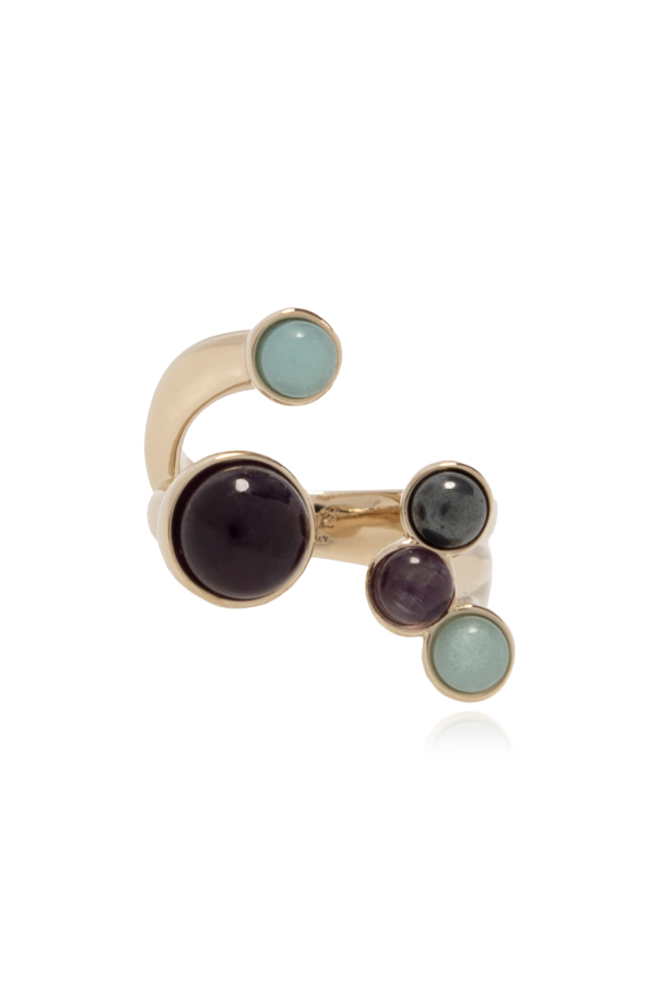 Gold-tone ring from Chloé. Made of brass. Inspired by the Zodiac Aquarius constellation, this item is embellished with white as well as blue, purple and grey semi-precious stones, hematite, amethyst and amazonite.
