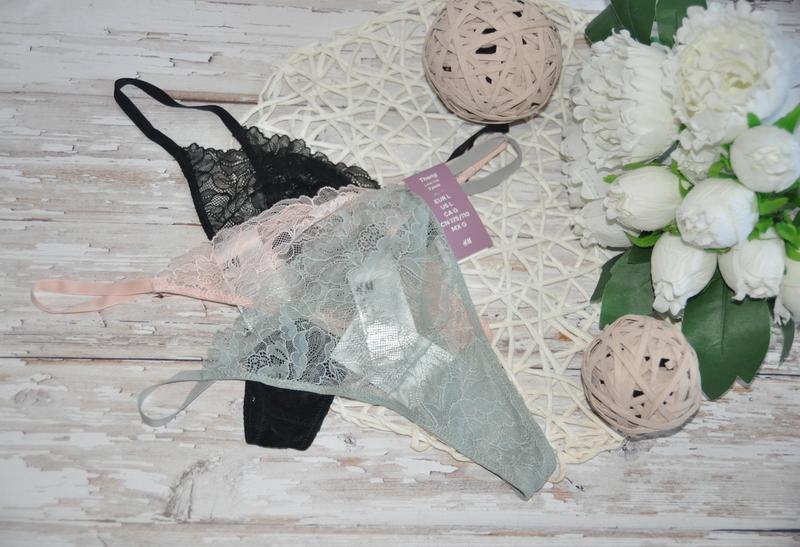 L H&M новые фирменные женские трусики трусики трусы танга бразилианы стринги бикини кружевные оригинал 3 шт