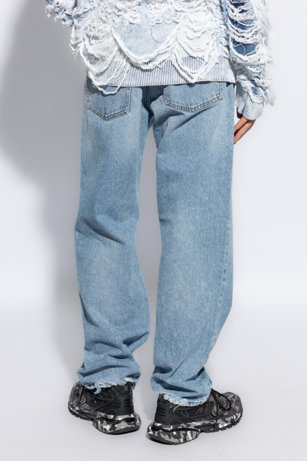 Introducing the 2010 D-MACS L.32 jeans by Diesel, an embodiment of casual elegance and modern craftsmanship. Crafted from 100% premium cotton, these jeans feature a loose fit design, ensuring both comfort and style. The straight-leg cut offers a timeless silhouette, while the light blue hue, adorned with deliberate distressing and fading, presents a tastefully 'worn-in' look. The distinctive mark of quality and exclusivity is evident in the small, yet significant, details such as the subtle tear on the right leg, adding an edge of contemporary style. Highlighting the brand's identity, the front pocket is graced with a designer logo label, framed by a white fabric with a red accent and decorative stitching, signaling Diesel's renowned attention to detail. Equipped with practical features like a zip and button closure, belt loops, and a total of five pockets—two in the front and two at the back, plus an additional slide-in pocket—these jeans merge functionality with fashion. The back pockets are accented with characteristic denim stitching, reinforcing the jeans' classic appeal. Why Choose the 2010 D-MACS L.32 Jeans? Expertly crafted from 100% cotton for maximum comfort and durability. Loose fit and straight-leg design offer a timeless and versatile style. Light blue denim with tasteful distressing for a stylish, 'worn-in' appearance. Unique details like the designer logo label and subtle tears add exclusivity. Functional features, including five pockets and a zip-and-button closure, blend practicality with fashion.