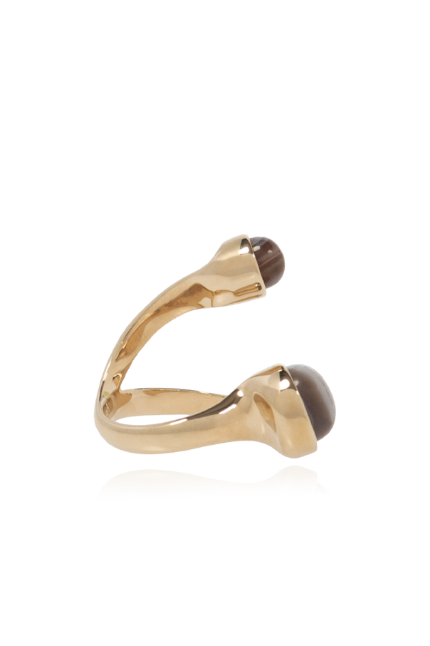 Gold-tone ring from Chloé. Made of brass. Inspired by the Zodiac Cancer constellation, this item is embellished with white and brown semi-precious stones, agate and mother-of-pearl.
