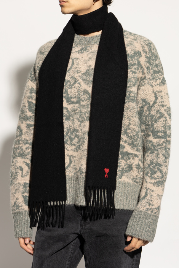 Introducing the Scarf with Logo Patch from the exclusive collection by Ami Alexandre Mattiussi. This exquisite scarf epitomizes the sophistication and charm synonymous with the brand, making it a quintessential addition to any wardrobe. Crafted from the finest 100% Wool, this scarf boasts a sumptuous texture, ensuring warmth and comfort during cooler days. The classic rectangular shape is accentuated by stylish fringes at one end, adding a touch of elegance and flair. The scarf's monochromatic black hue offers unparalleled versatility, seamlessly complementing various ensembles. A distinctive red heart-shaped logo patch featuring the letter "A" adorns one end, signifying the exclusive nature and recognizable branding of Ami. Designed as a unisex accessory, this scarf is perfect for both men and women, and can be draped in numerous ways to showcase its adaptability and practicality. Why You Should Buy This Product? Luxurious 100% wool material for ultimate warmth and softness. Elegant design with classic fringes and a versatile black color. Exclusive red heart-shaped logo patch for brand recognition. Unisex appeal, suitable for both men and women. Multiple styling options for diverse looks.