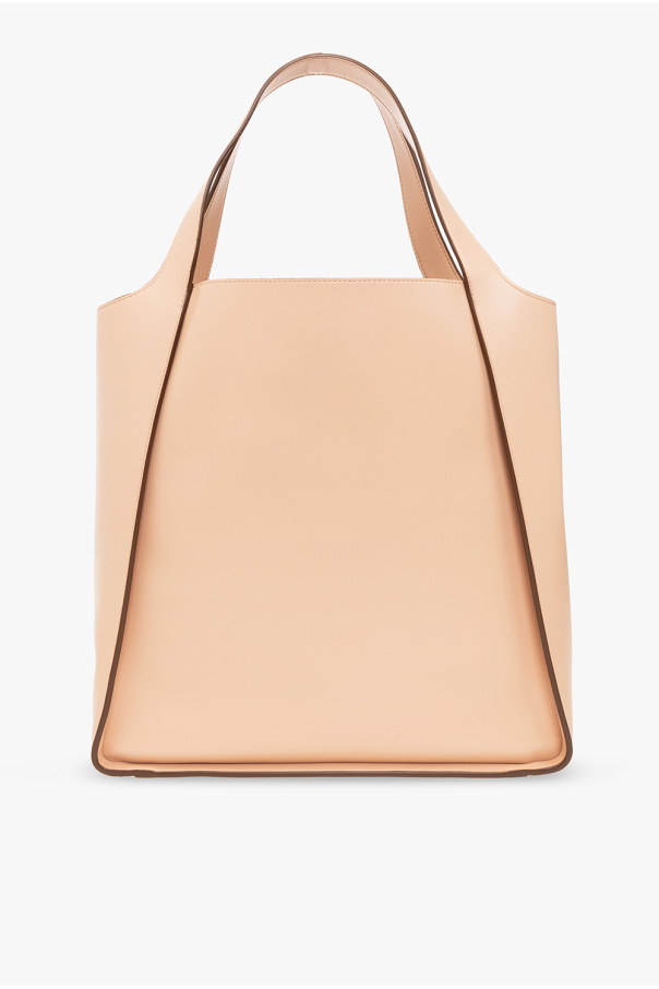 Blush pink shopper bag from Stella McCartney. Crafted from faux leather, this design features a round slip pocket with a perforated logo on the front, two handles, gold-tone metal hardware and one internal compartment with a removable pouch with a snap closure.