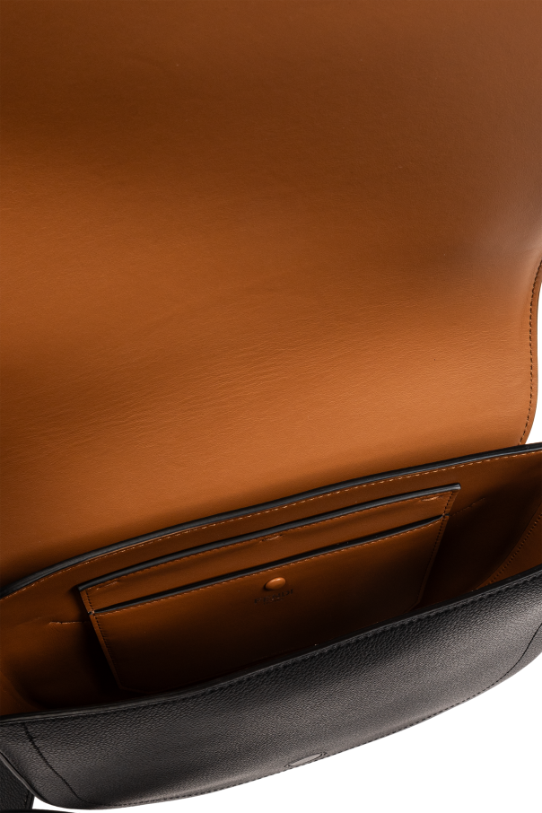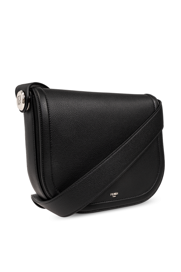 Introducing the ‘Roma Chiodo’ Shoulder Bag by Fendi, a quintessence of luxury and meticulous design. Crafted from premium black calfskin leather with a distinctive grainy texture, this bag exudes sophistication and an air of exclusive refinement. Its rectangular silhouette with rounded edges, complemented by a sleek magnetic flap closure, epitomizes elegant minimalism. The bag's front flap is adorned with a subtle logo, a testament to Fendi's commitment to understated luxury. Its adjustable shoulder strap offers versatile wearability and comfort, enhancing its functionality. The interior, lined in a striking contrasting material, not only adds an aesthetic appeal but also houses an additional pocket for efficient organization of essentials, blending functionality with style seamlessly. Impeccable craftsmanship is evident in the precise stitching and finishing, with silver metal accents adding a touch of elegance. The ‘Roma Chiodo’ is not just a bag but a statement of refined taste, designed to complement a wide array of ensembles, as showcased in its versatile styling capabilities. Why Purchase This Product? Luxurious grainy calfskin leather construction. Elegant, minimalist design with magnetic flap closure. Enhanced functionality with adjustable strap and internal pocket. Signature Fendi sophistication with discreet logo detailing. Universal appeal with its classic black hue, easy to integrate into any wardrobe.