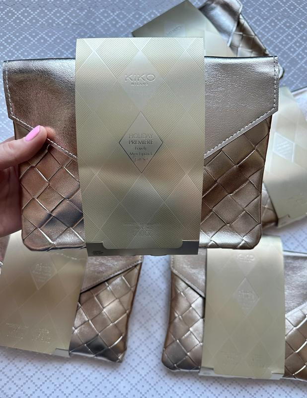 Подарочный набор для губ и рук, состоящий из блестящей жидкой помады в сочетании с лаком для ногтей с блестящим эффектом, в клатче.