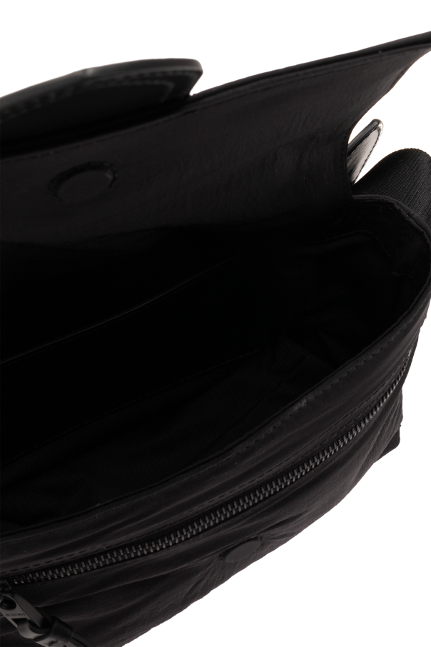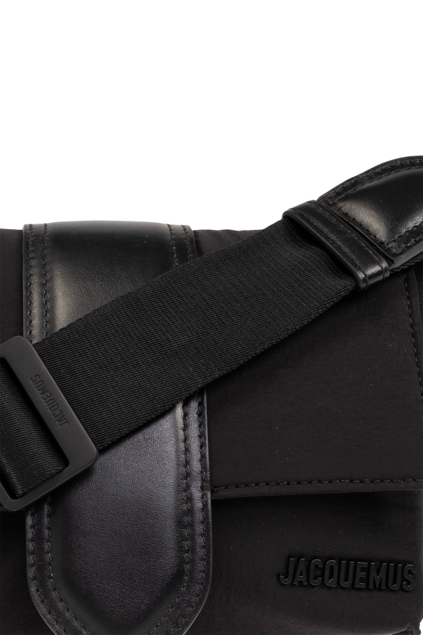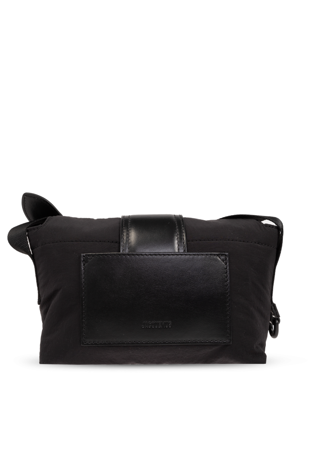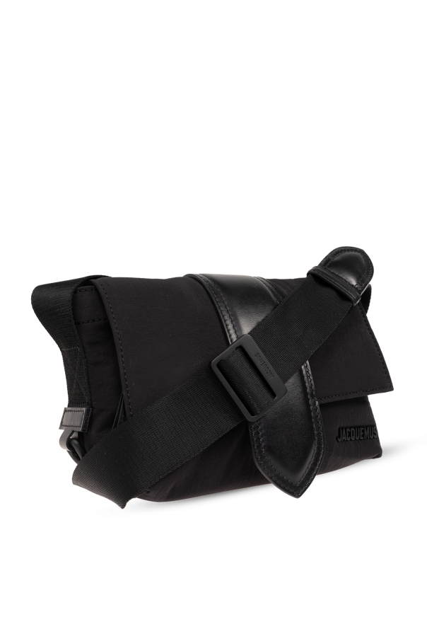 Black ‘Le Petit Messenger Bambino’ shoulder bag from Jacquemus. Made from technical material and trimmed with leather, this design secures with a magnetic fastener and showcases a logo application on the front, one slip pocket on the back as well as an adjustable shoulder strap and one internal compartment with one slip pocket and one zip pocket.